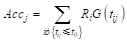 为基础,同样形成一个时间作用域;在OD成本矩阵中搜索落在该时间作用域内的消防站,利用高斯衰减函数加权供需比率,并进行加和,得到每个高压电塔