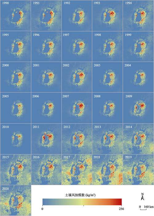 土壤风蚀模数年际空间分布图(1990–2020)