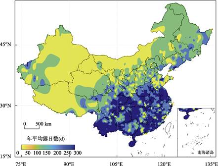 图1 中国区域年平均露日数空间分布图(2019–2024)