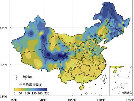 图2 中国区域年平均霜日数空间分布图(2019–2024)