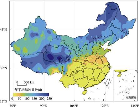 图3 中国区域年平均结冰日数空间分布图(2019–2024)