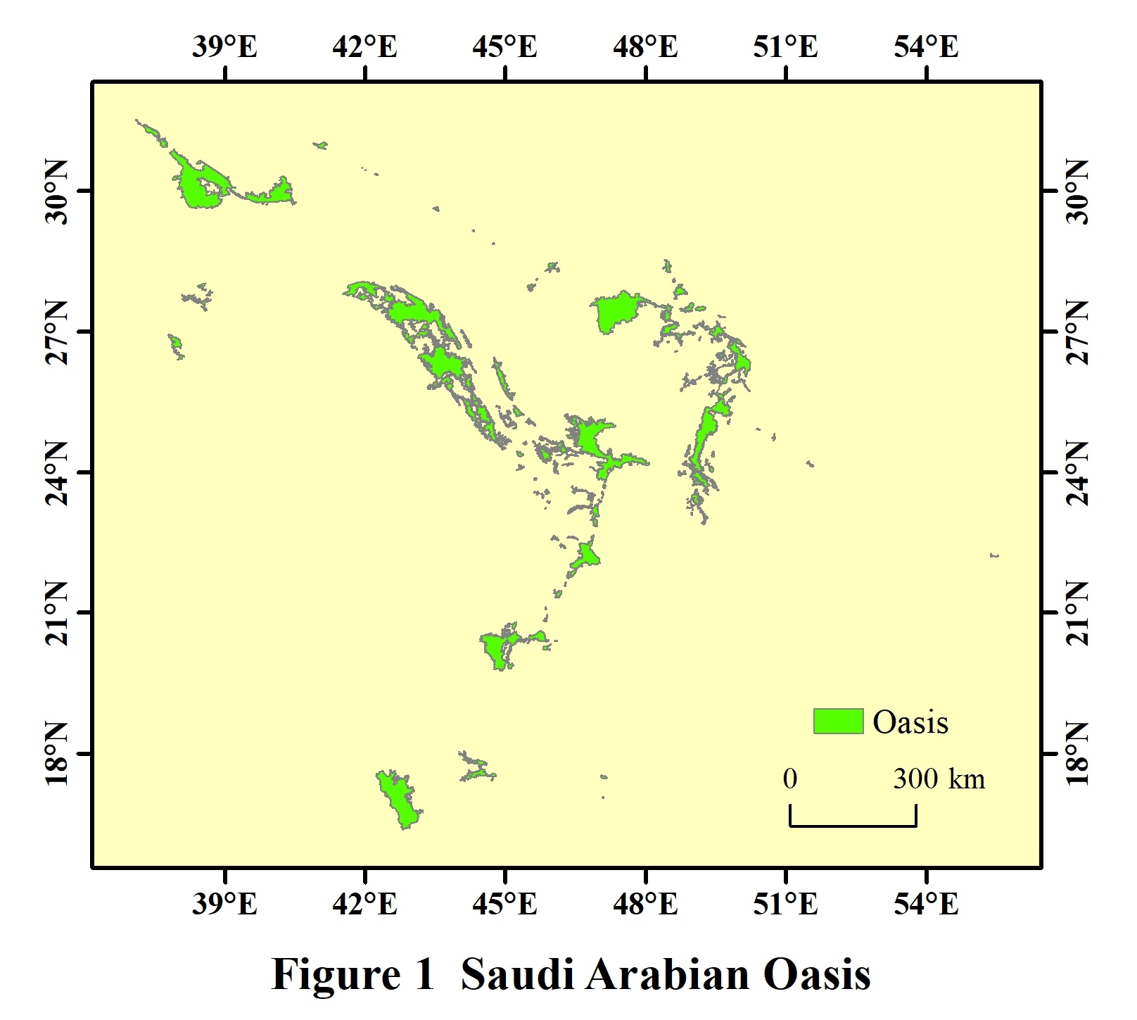 Saudi Arabian Oasis is located in Arabian Peninsula, southwestern of the Asia, bordering the Indian Ocean, between 16°22′25″N and 31°31′27″N, 35°58′59″E and 55°31′46″E. The total area of the Saudi Arabian Oasis is 78,730.10 km² (Albers). It is composed of 264 individual oases, including Buraidah Oasis, Al-Ahsa Oasis and Riyadh Oasis, etc. Among them, the Buraidah Oasis is the largest one with an area of 18,100.64 km². The dataset was developed based on Google Earth 2020 imagery and related maps. The dataset is archived in .kmz and .shp data formats, and consists of 17 data files with data size of 879 MB (compressed into 2 files with 333 MB).