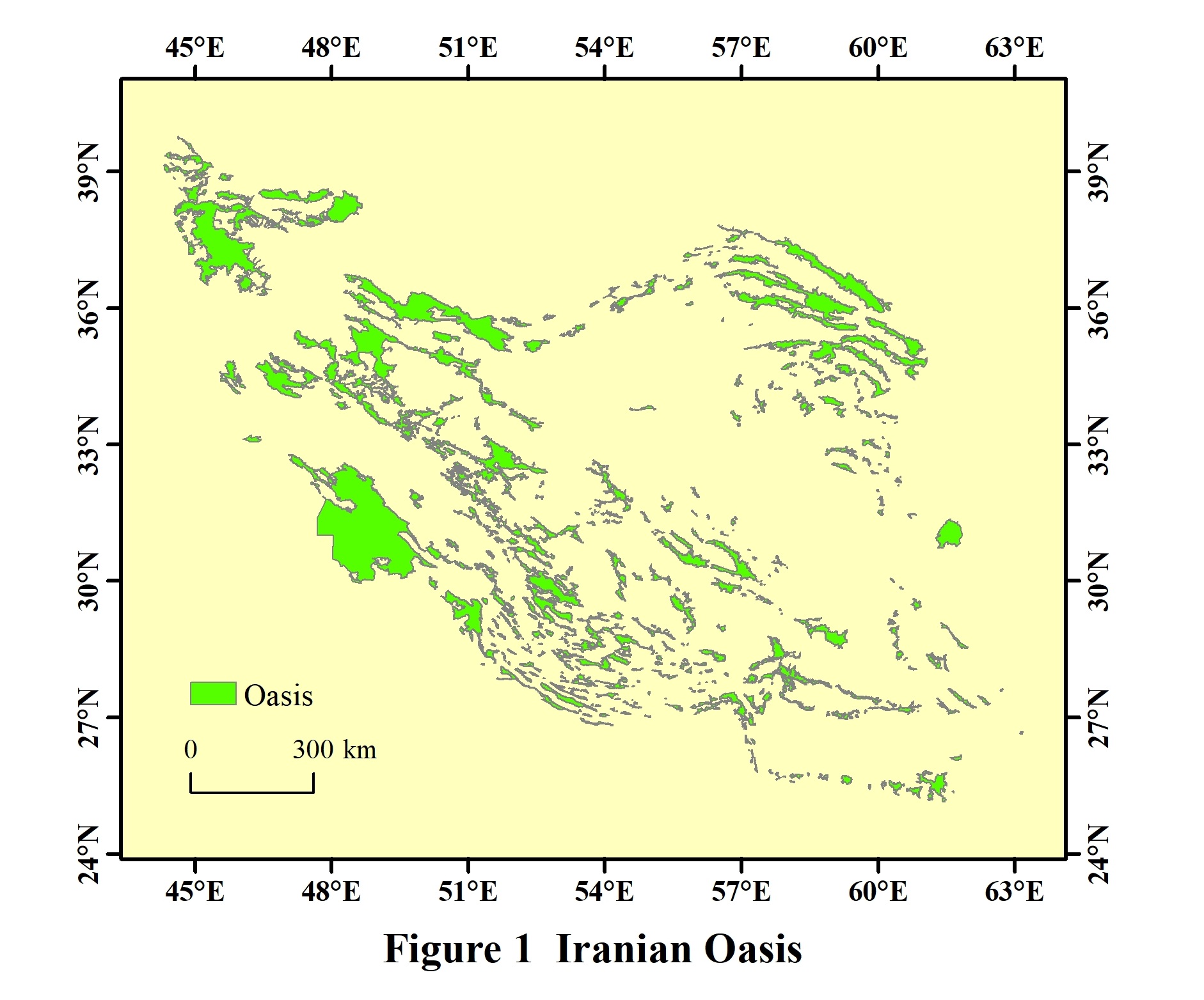 Iranian Oasis is located in Western Asia, bordering the Indian Ocean, between 25°09′04″N and 39°46′38″N, 44°18′56″E and 63°10′52″E. The total area of the Iranian Oasis is 239,371.98 km² (Albers). It is composed of 494 individual oases, including the Karun River Oasis, Urmia Lake Oasis and Tehran Oasis, etc. Among them, the Karun River Oasis is the largest one with an area of 35,858.84 km². The dataset was developed based on Google Earth 2020 imagery and related maps. The dataset is archived in .kmz and .shp data formats, and consists of 18 data files with data size of 2.18 GB (Compressed into 3 files with 911 MB).