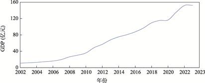 根据竹山县人民政府统计数据,竹山县GDP从2002年的10.84亿元逐年递增至2023年的152.4亿元(图10)。竹山茶作为竹山县重要的经济作物,对国民经济的发展起到了显著的推动作用。从上世纪90年代末开始,竹山县就把茶叶作为农业特色主导产业。2017年以来大规模建设茶园,每年发展约666.67 hm2,截至2024年底,根据竹山县农业农村局统计,全县16个乡镇的242个村中的220个村的适宜区域几乎都种上了茶叶,竹山茶园总面积近30万亩(约200 km2),干茶产量近2万吨, 平均每斤卖120元,最贵明前茶1,800元/斤,综合产值突破70亿元,占GDP一半以上,显示竹山茶业已成为竹山县规模最大、综合产值最高的优势产业。