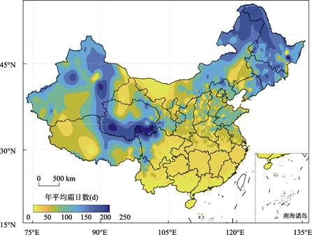 图2 中国区域年平均霜日数空间分布图(2019–2024)