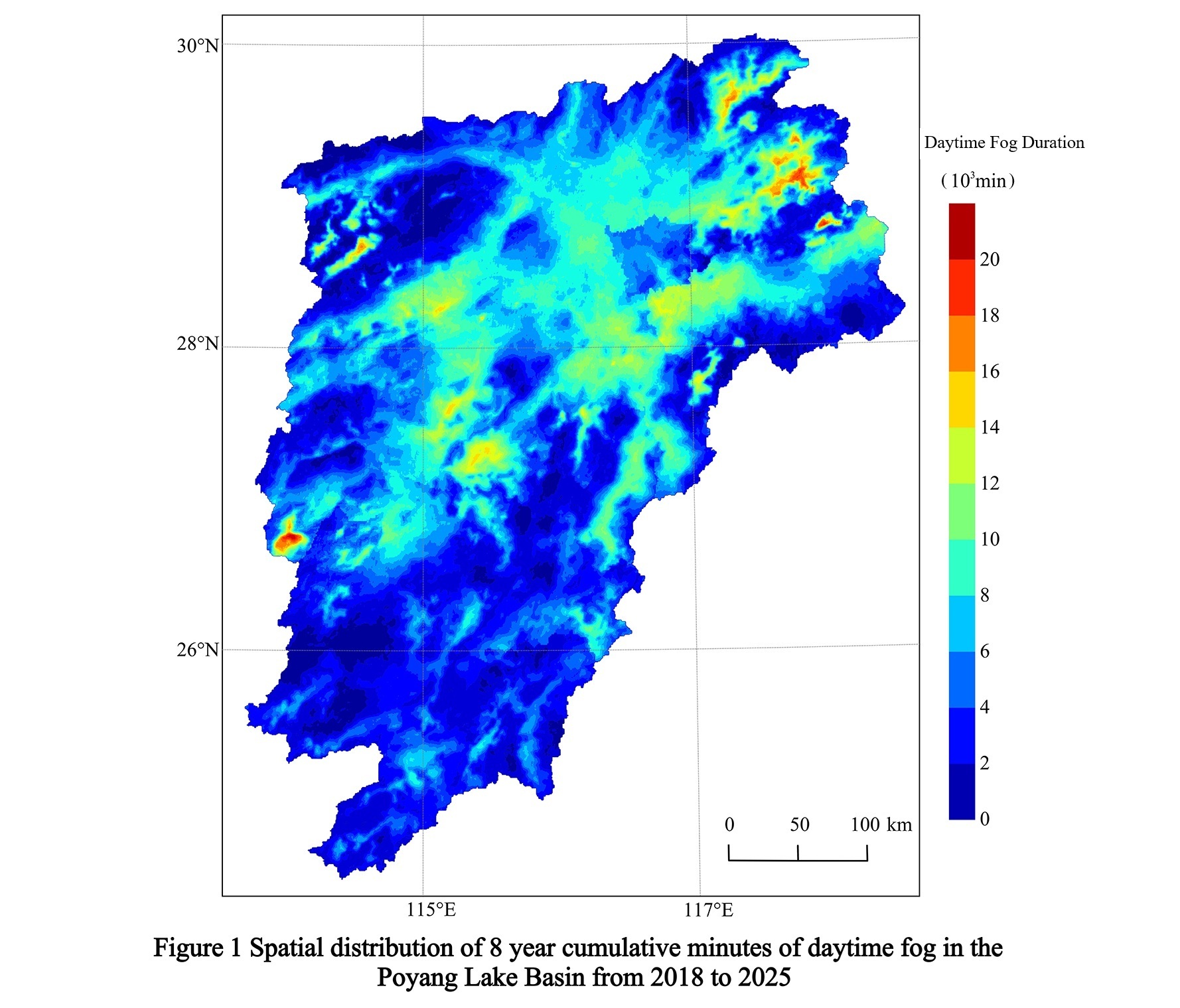 LI Haijun, SHAN Jiusheng*, LIU Bo, YIN Xiaofei. 500-m Raster Dataset of Fog Duration in Poyang Lake Basin (2018-2025)[J/DB/OL]. Digital Journal of Global Change Data Repository, 2026. https://doi.org/10.3974/geodb.2026.03.05.V1.