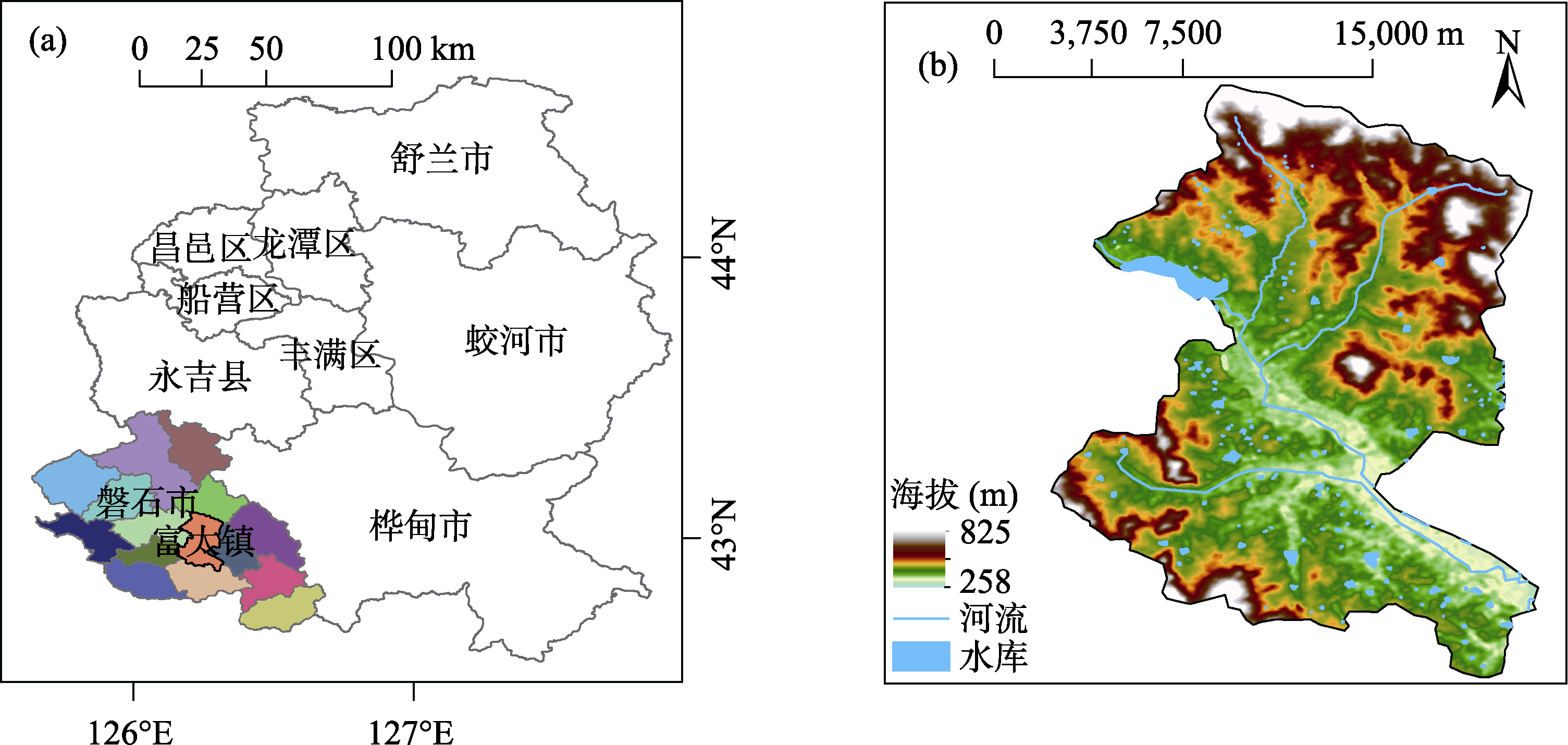 磐石市富太镇位于吉林省中南部,距磐石市市中心19 km,辖区介于东经126°08′- 126°20′,北纬42°52′-43°06′,总面积为192 km2(图1a)。