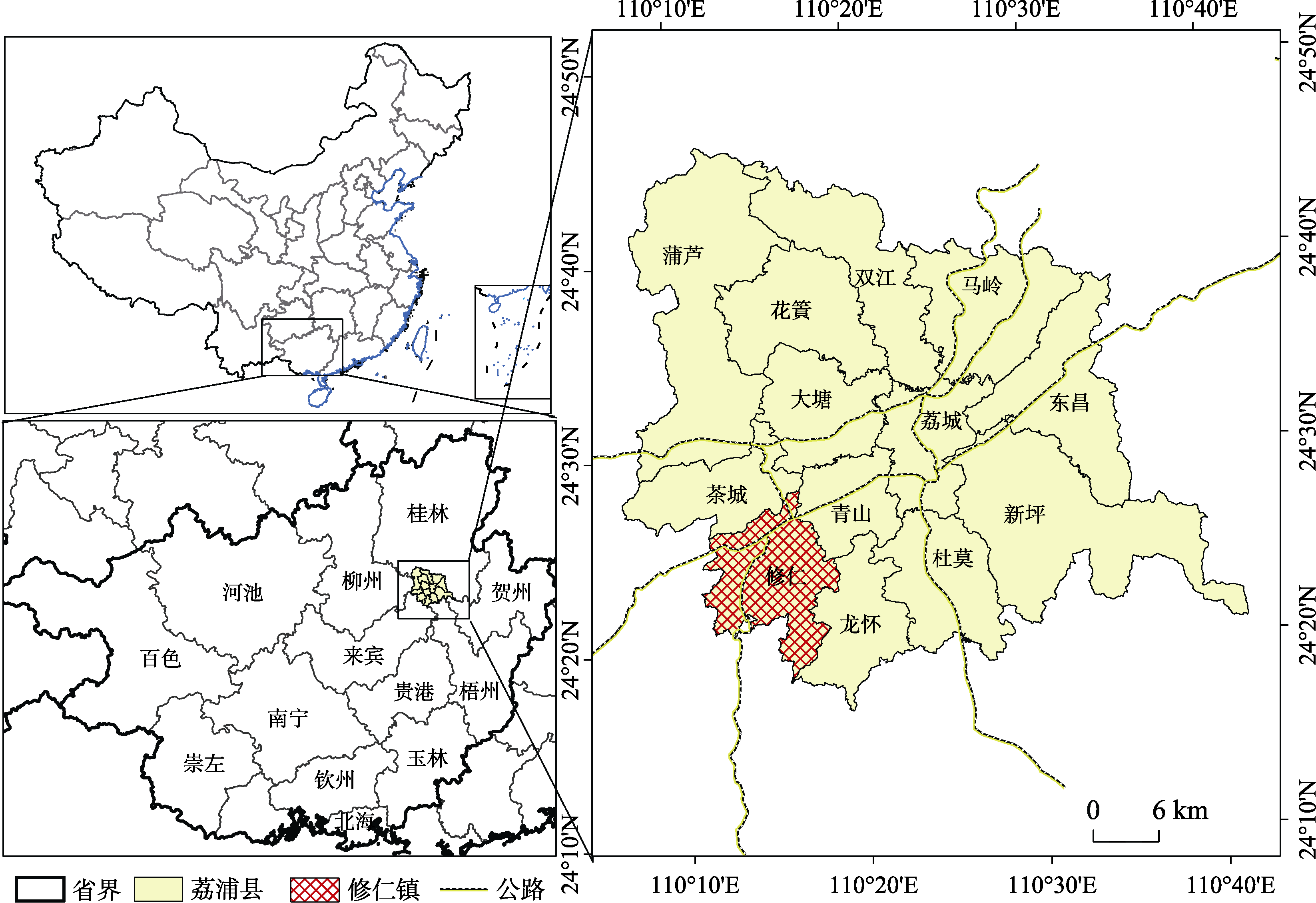 修仁镇是荔浦市的三大重镇之一,位于荔浦市西南部,具有悠久的历史,三国吴甘露元年(公元265年)孙皓称帝时设置建陵县,唐朝长庆三年(公元823年)更名为修仁县,宋神宗熙宁四年(公元1071年)撤县并归于荔浦县,宋元丰元年(公元1078年)又恢复修仁县。1951年8月撤县制,1984年设置修仁镇归荔浦县管辖。全镇总面积109 km2,属丘陵地形,森林覆盖率80%以上,有农用地2.988,9万亩,其中水田2.134,8万亩,旱地0.854,1万亩,总人口3.53万[7]。全镇以出产荔浦芋、马蹄、砂糖桔闻名。经过多年的农业综合开发,全镇逐步形成了特色农业的规模化经营。修仁镇被农业农村部评为“2020年全国乡村特色产业十亿元镇”,其中荔浦芋种植基地所在的大榕村获评为“桂林市健康村”“自治区卫生村”。