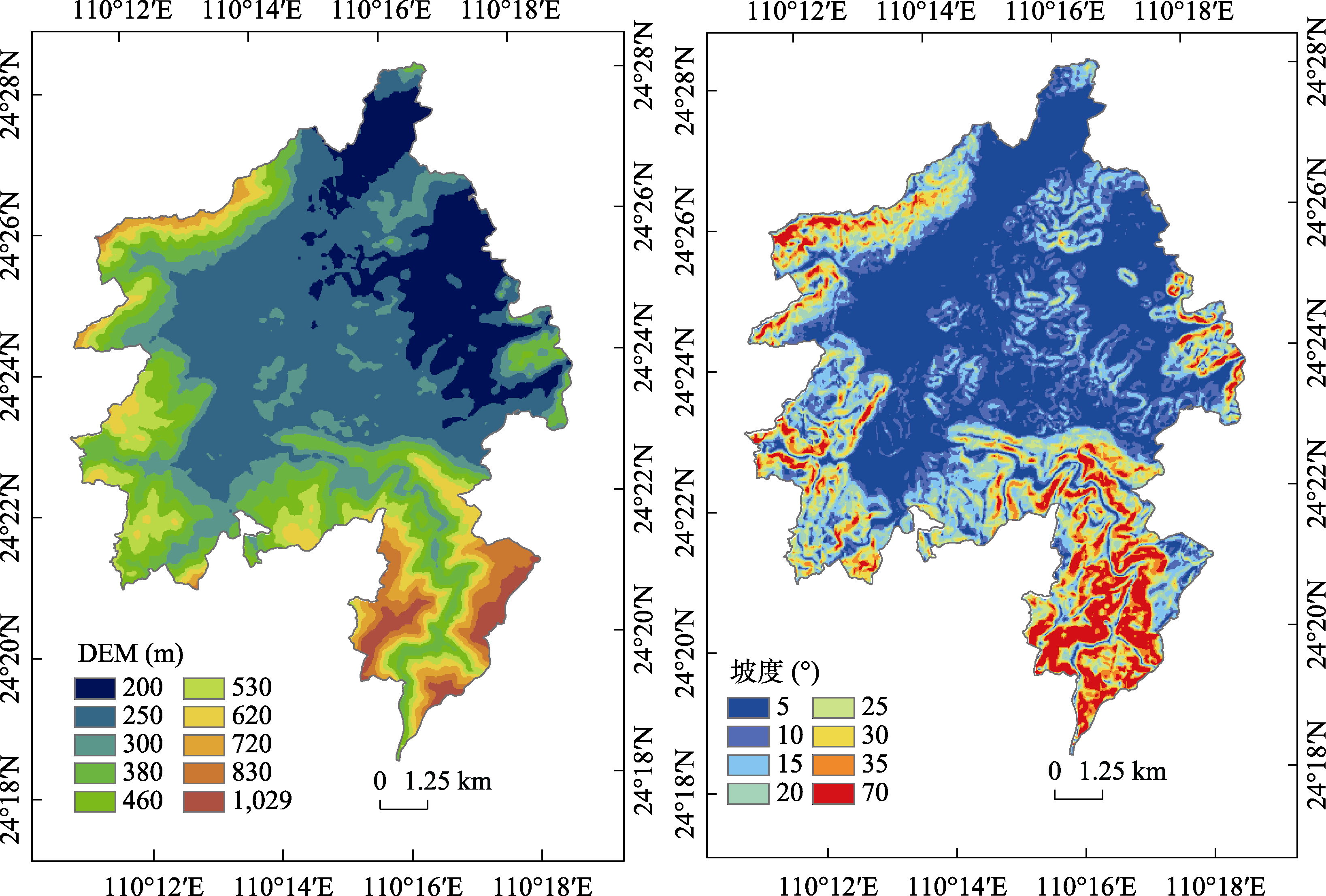 数据集组成 包括4类数据:(1)案例区边界;(2)自然地理数据(水文、土壤、气象、高程分类、坡度分类、土地利用等);(3)荔浦芋产品特性数据;(4)经营管理与历史文化等