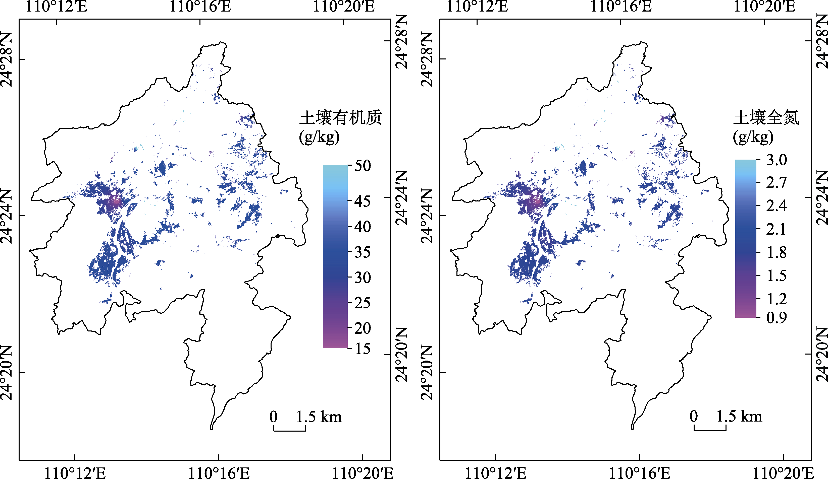 图6 修仁镇耕地土壤有机质含量和全氮含量分布