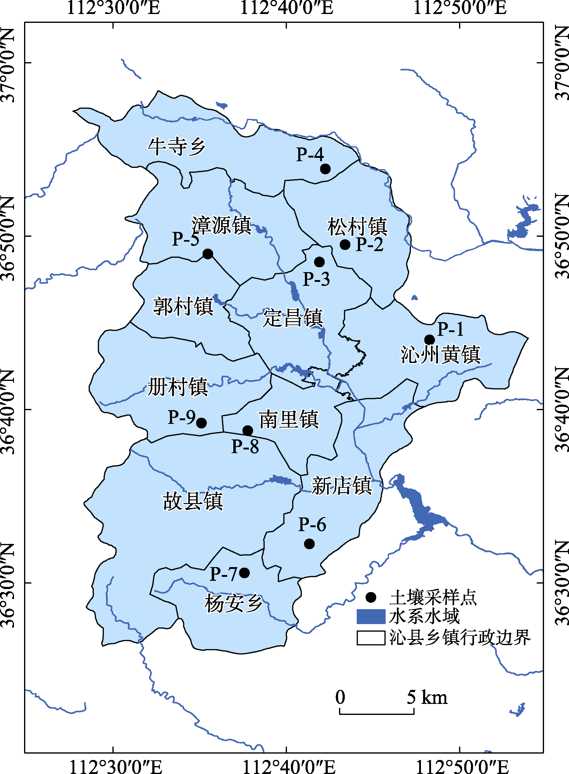 注:采样点P-1位于沁州黄镇,P-2位于松村镇,P-3位于定昌镇,P-4位于牛寺乡,P-5位于漳源镇,P-6位于新店镇,P-7位于杨安乡,P-8位于南里镇,P-9位于册村镇。