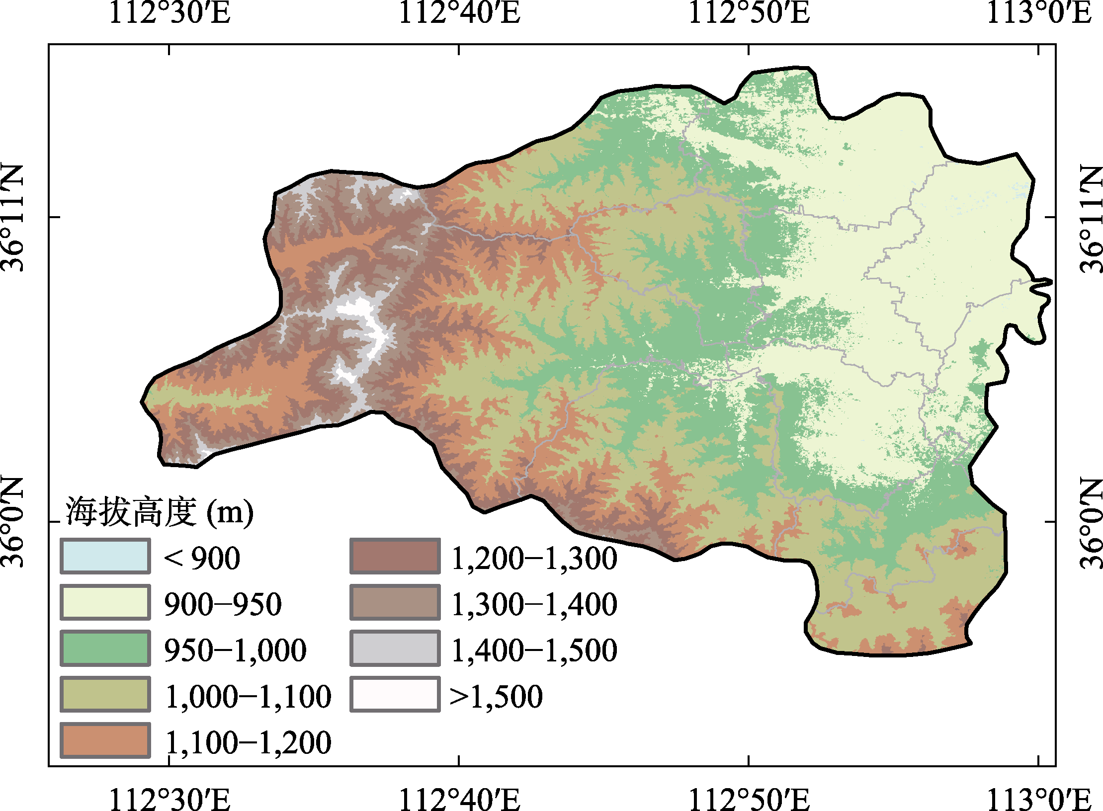 长子县位于上党盆地西南缘的黄土高原区,东依太行山,西连吕梁山,南临汾河,北接大同盆地。整体地势呈西高东低格局,地貌具有3级阶梯特征(图2)。西部以发鸠山群山为主体,山体起伏明显,中南部为起伏较缓的山地,山川交错、丘陵相间,东北部则相对平坦。基于ASTER GDEM[2]提取的地形信息,全县海拔为865–1,645m,平均海拔929.8 m,其中海拔主要集中在900–1,000 m之间,属于典型的中低山与丘陵地貌。坡度分布总体平缓,大多数地区坡度低于3°(图3),为设施农业的建设和合理布局提供了良好的地形基础。
