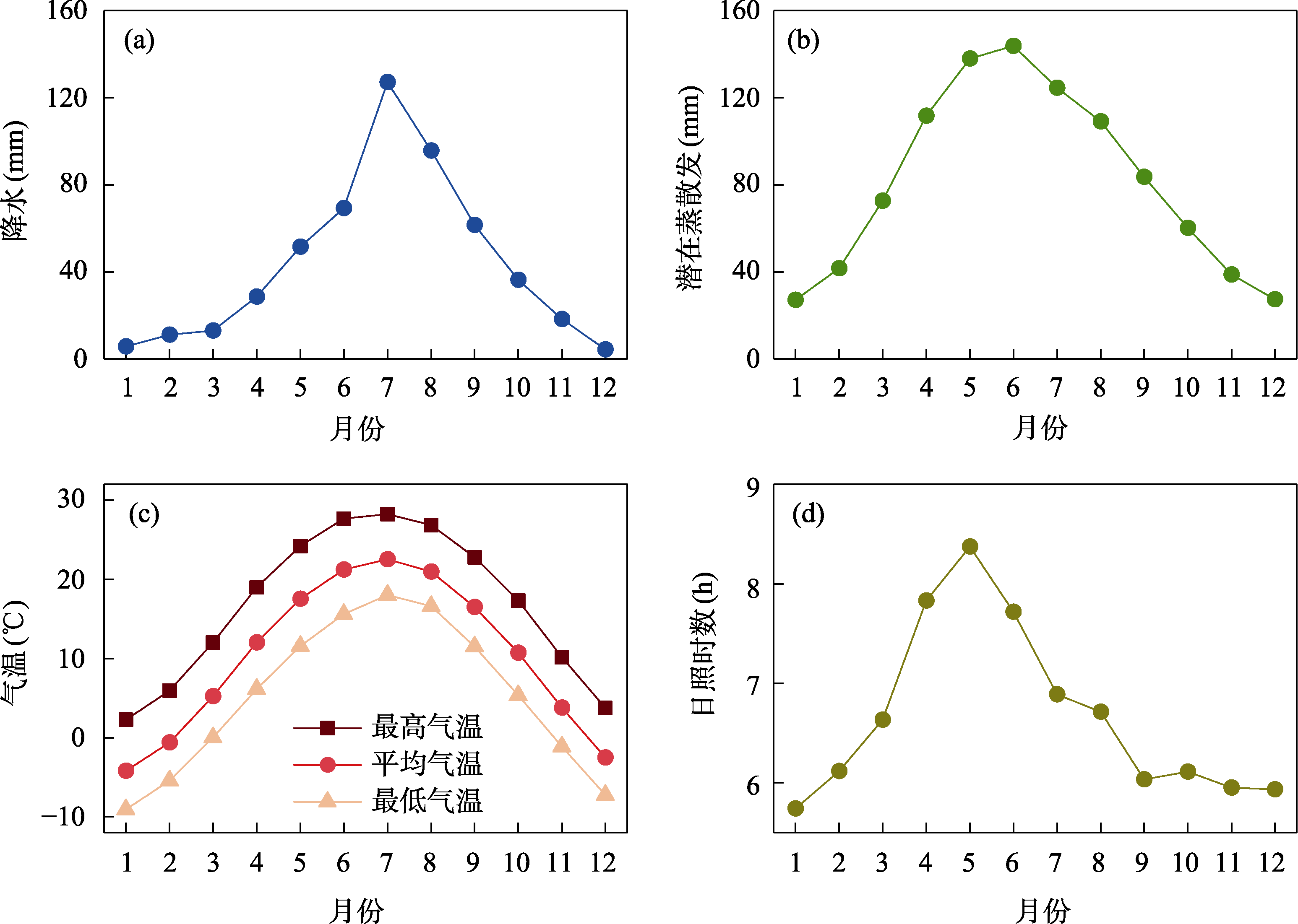 长子县属暖温带半湿润大陆性季风气候,四季分明,气候温和,冬季不严寒,夏季无酷暑,降水与高温期基本同期(图6和7)。基于中国气象数据网中国地面气候资料日值数据集(V3.0)[4],作者选取距长子县最近的长治气象站(编号53882,纬度36.05°N,经度113.07°E,海拔988.59 m)数据进行分析。结果表明,1990–2020年间年降水量为330.57– 915.84 mm,多年平均665.15 mm;年均气温10.22 ℃,年极端最高气温31.08 ℃,极端最低气温–13.7 ℃。大于10 ℃的年有效积温为3,076.43–3,213.24 ℃,年总积温3,148.21 ℃。0–20 cm土层年均温度11.05 ℃,较年均气温高1.85 ℃。年平均日照时数2,556.5 h,4–6月最多;年平均无霜期143–196天。