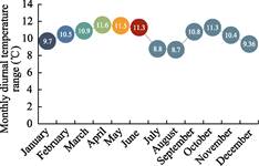 | Figure 5 Monthly precipitation | Figure 6 Monthly diurnal temperature range |