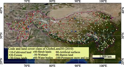 The Roof of the World (RoTW) is a plateau mountainous area with the Qinghai-Tibet Plateau as its core. According to the literature[20], RoTW has an area of 4,000,947 km2, of which 53.75% is over 4,000 m. This vast scope and huge relative elevation lead to the diversity of land cover types, and provide a broad representation for the global validation of GlobeLand30.