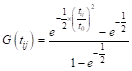 两步移动搜索法根据确定的范围,分别以供应点(本研究为消防站)和需求点(本研究为高压电塔)为中心进行两次搜索,计算需求点可获得的供应量(设施数量)[31]。高斯两步移动搜索法引入高斯衰减函数代替没有距离衰减的固定半径,在两次搜索中进行距离衰减[32]。分析过程中考虑到消防车实际的行车情况,用网络距离(网络通行时间)代替平面的欧氏距离,引入网络分析法的OD成本矩阵进行计算[33]。
