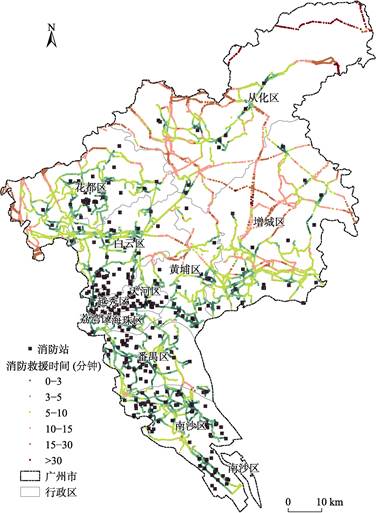 (5)基于现有消防站地理位置,通过道路网络计算最近消防站到各高压电塔所需的救援时间;