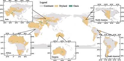 Despite their importance, global research on oases remains insufficient. The most pressing challenge lies in the unresolved question of their global distribution, which has led to an unclear baseline and inconsistent data. Existing studies primarily focus on specific river basins[7,8] or individual countries[9,10], leaving the exact global number, area, and spatial distribution of oases largely unknown. Furthermore, the absence of publicly available, freely accessible global datasets has significantly limited quantitative analyses and hindered the systematic development of oasis science.