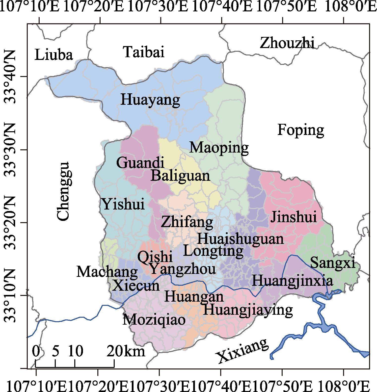 Yang County(107°11′E–108°33′E, 33°02′N–33°43′N)is famous as the “Home to Crested Ibis”. It is located at the southern of the Qinling Mountains and the eastern edge of the Hanzhong basin. Yang county borders Foping county on the east, Xixiang county on the south, Chenggu county on the west, and Taibai county and Liuba county on the north (Figure 3). According to data from the China County Statistical Yearbook in 2019, Yang county had a population of 446,300, with 3 subdistrict offices, 15 towns, 271 administrative villages, and 14 community neighborhood committees2. The terrain of Yang county is higher in the north and lower in the south, with the highest elevation of 3,022 m in the northeast and the lowest elevation of 396 m in the southwest (Figure 4). It can be divided into Qinling middle mountain, Qinba low mountain, Qinba hilly area and Hanjiang Pingba district[1]. From 2000 to 2018, the annual precipitation was 907.09 mm, and the average annual temperature was 12.3 °C.