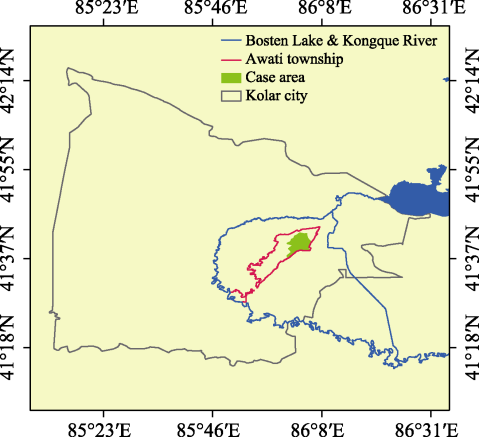 | Data files | (1) Geo-location of Kongque River oasis; (2)Boundary of the core area of KFP; (3) NDVI of Kongque River oasis; (3) Climate data of Kolar city; (4) Soil and water of Awati, Kolar |